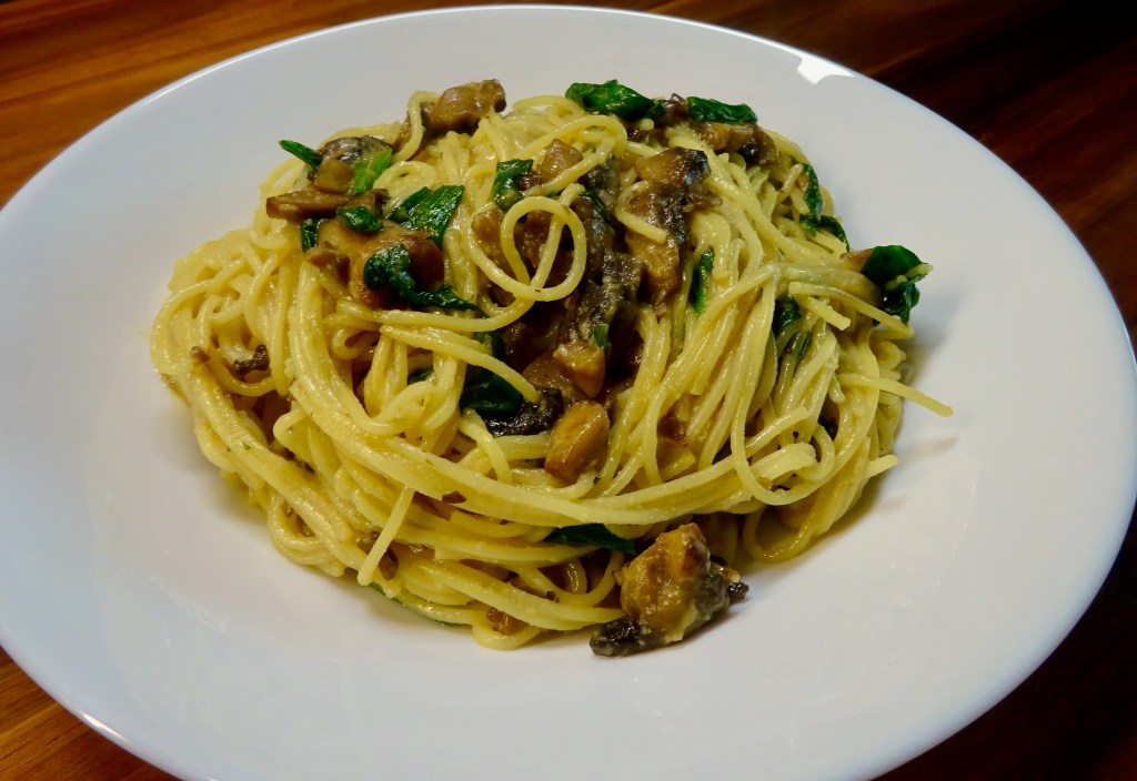 - While waiting for water to boil, slice or roughly chop your mushrooms. Add a small amount of oil to pan and heat on medium heat, then sauté mushrooms until they’re soft.